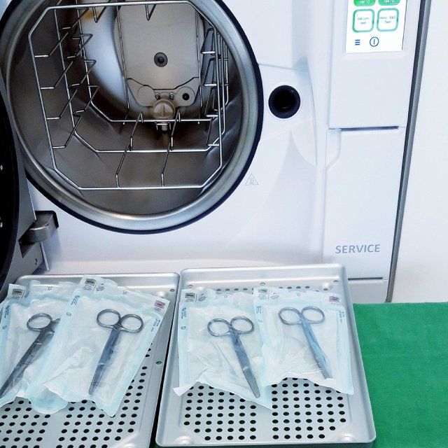 Vorab werden alle verwendeten Instrumente und Schmuck getrennt in Instrumentenwannen eingelegt. Diese ist mit einer Desinfektionslösung (Septo Pre Clean) verdünnt, mit Wasser angesetzt. In der Wanner bleiben die Instrumente und Schmuck getrennt erstmals für mind. 30 min. Anschließend kommen diese vorgereinigten Instrumente und Schmuck in den Ultraschall. Anschließend werden die Instrumente kurz unter fließendem Wasser abgespült und kommen anschließend in den Instrumentenspüler (RDG) Thermodesinfektor. Dieser reinigt und spült unter Hitze (ca. 93 °C) für ca. 10min das restliche Desinfektionsmittel oder Verunreinigungen vom Instrumentarium und Schmuck ab.